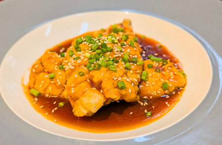 Chinese cuisine, pork in sweet and sour sauce served on the table