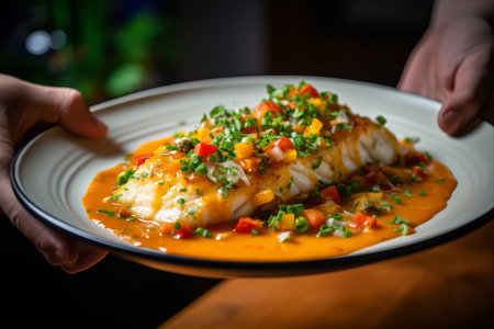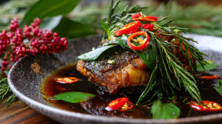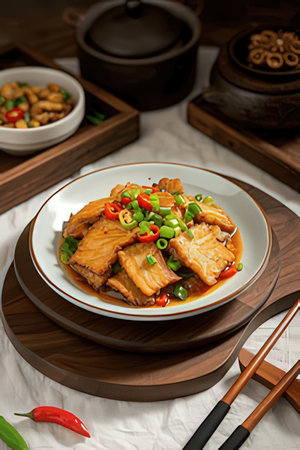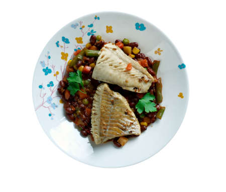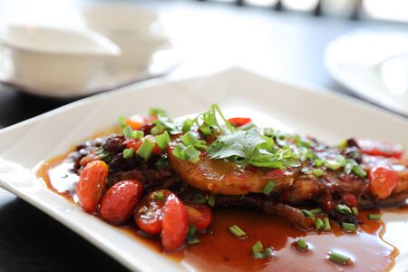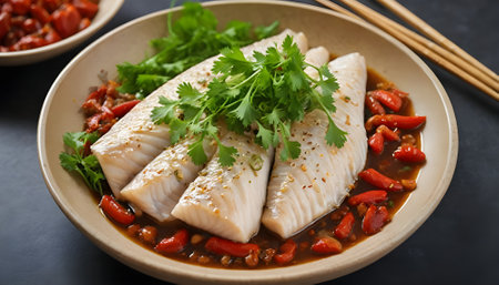 chinese style grilled fish fillet with spicy chilli and vegetables
