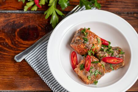 Stewed fish for the winter Palmida fish Mussar Yam with mushrooms