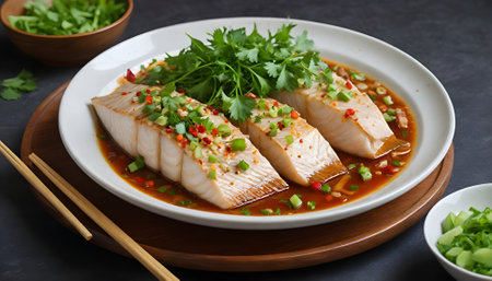 Steamed Cod Fish with Soy Sauce or Steamed Snow Fish or Chilean See Bass with Soy Sauce