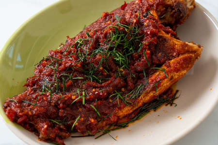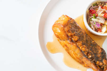 fried snapper fish with fish sauce and spicy salad - Asian food style