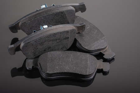 A set of new automobile brake pads on a black background