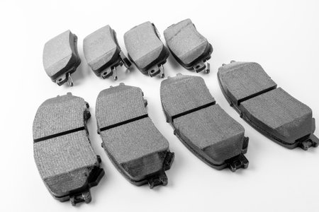 brake pads and auto parts on a white table