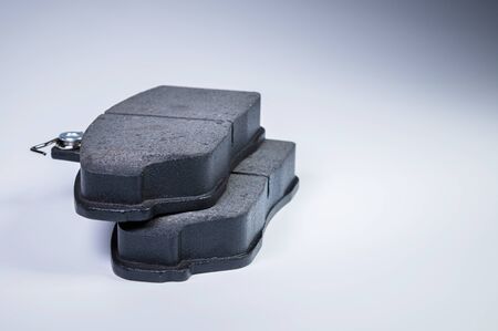 Brake pads disc brakes on a passenger car on a gray background. New spare parts maintenance service transport and repair