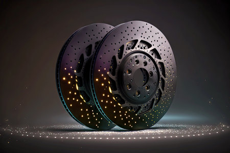 A detailed view of a precision brake disc used in automotive applications, showcased in a modern manufacturing facility highlighting advanced engineering and design.