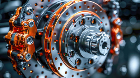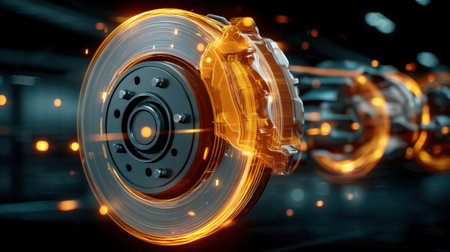 Dynamic image of a brake system component, illustrating advanced engineering and mechanical precision. Perfect for automotive design projects and technological showcases.