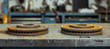 Comparison of New and Worn Brake Rotors on a Workbench for Automotive Maintenance