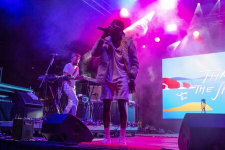 FARO, PORTUGAL: 6th SEPTEMBER, 2019 - Rap singer, Biya, performs on Festival F, a big festival on the city of Faro, Portugal.