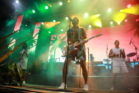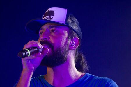 LOULE, PORTUGAL: 31st AUGUST, 2019 - Music artist, Gabriel o Pensador, performs on White Night, a festival on the city of Loule, Portugal.