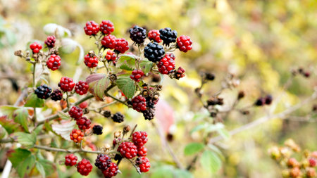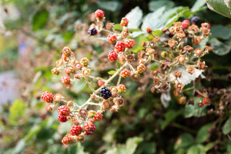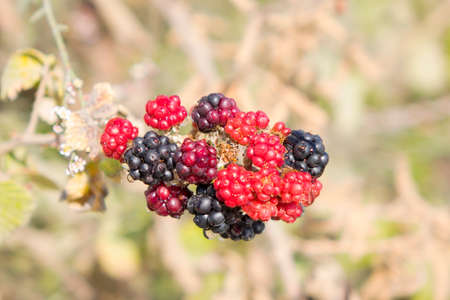 Ripe and immature fruits of wild blackberry
