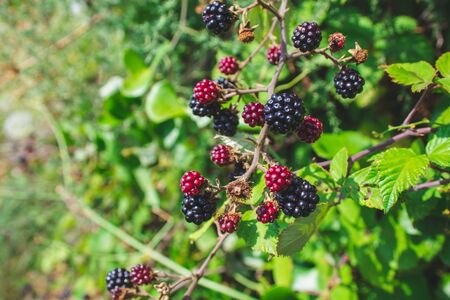 Ripe and unripe blackberries growing on a field in Croatia during summer
