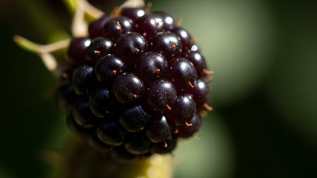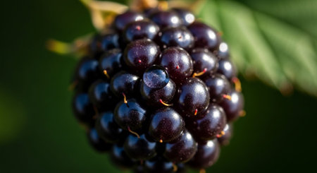 Stunning close-up image of a ripe black raspberry showcasing its glossy surface and intricate texture. Perfect for food enthusiasts and health-related content.