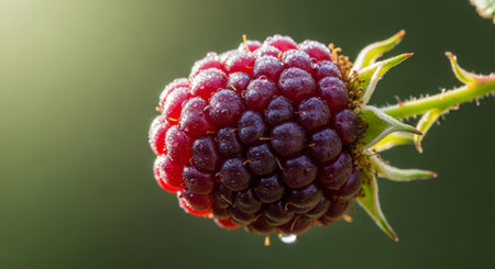 forest Blackberry fruit growing on branch on a green background