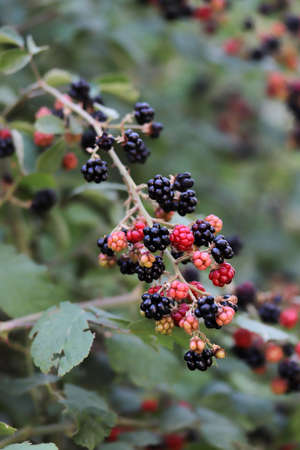 Ripe and unripe blackberries on a panicle