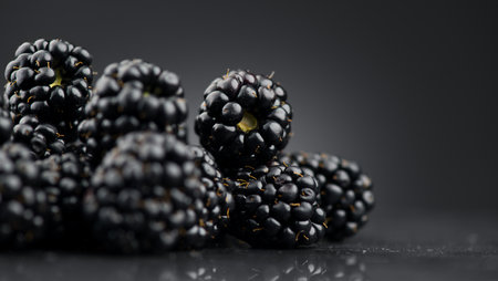 Close-Up Macro Image of Fresh Blackberries on Dark Background, Natural Organic Antioxidant Delight