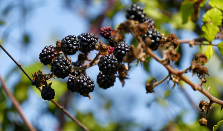 Wild blackberry on a branche in Siurana, Catalunya, Spain. Close-up