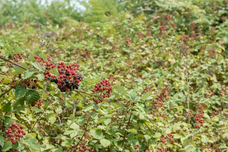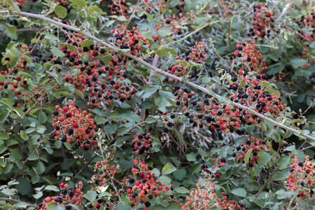Ripe and unripe blackberries growing on a field in Croatia during summer
