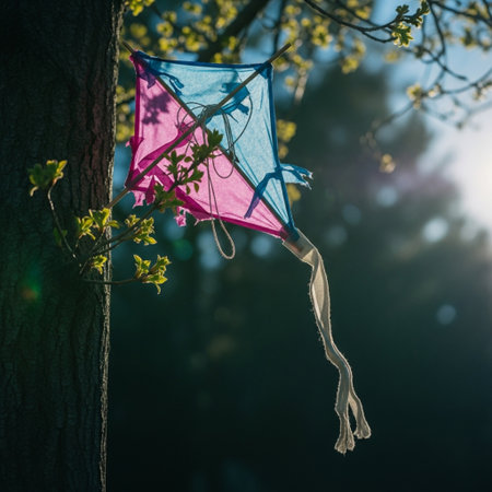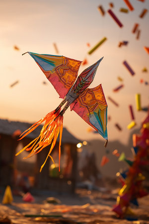 the intricate details of a kite’s Makar Sankranti design, capturing the fine threads and bright colors