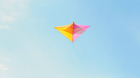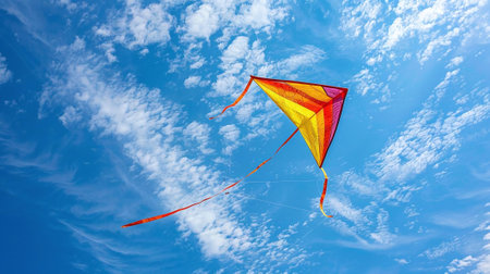 A vibrant kite majestically soaring high in the boundless clear sky capturing the joy freedom and of harnessing the wind and exploring the great outdoors