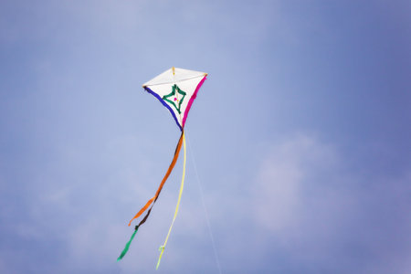 Colorful kite flying in the blue sky