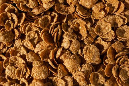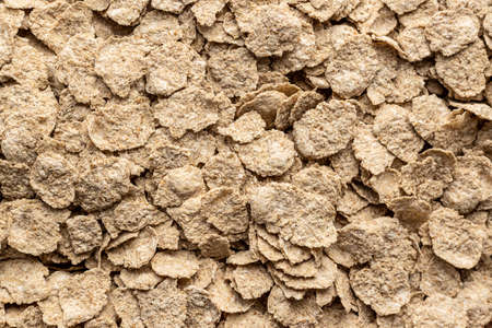 Whole grain cereal flakes. Wholegrain breakfast cereals. Top view.