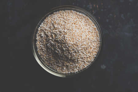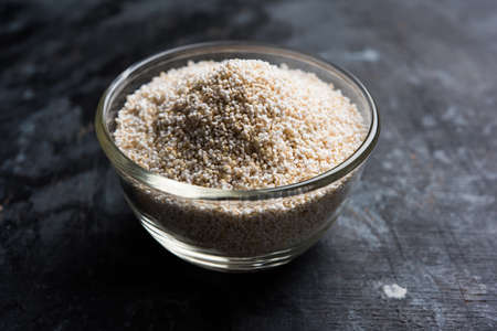 Amaranth or rajgira lahi in a bowl with sweet laddu. selective focus