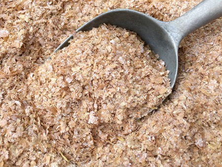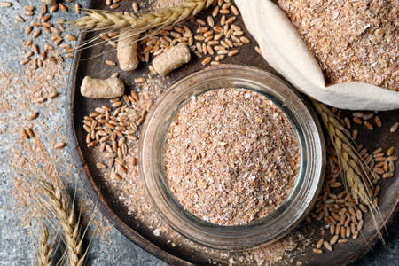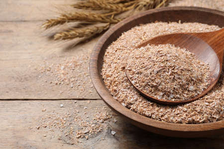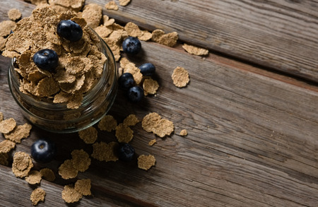 Healthy diet high dietary fiber breakfast with bowl of bran cereal on a wooden background