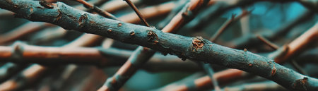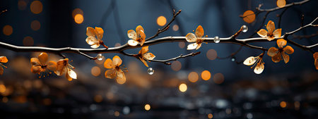 AI Generated. A blue background with a tree branch in the foreground