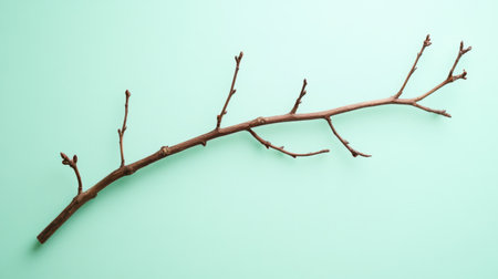 A single natural branch with budding twigs set against a soft green background, showcasing simplicity and organic beauty ideal for design projects.