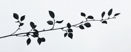 Silhouette of a branch with leaves on white background, minimalistic nature concept