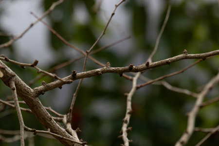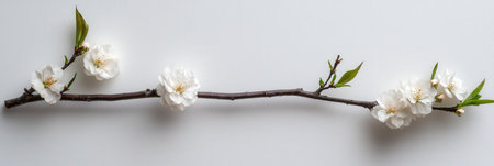 Close-up of a budding branch against a light background, minimalist nature concept