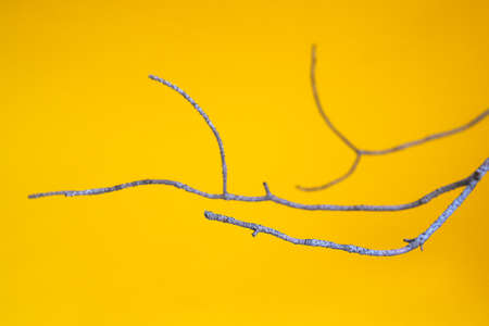 Dry branches on a yellow background. Copy space, layout, background.