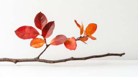 Minimalist composition of red and yellow leaves on sparse branches, symbolic of quiet fall beauty