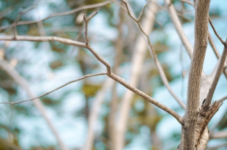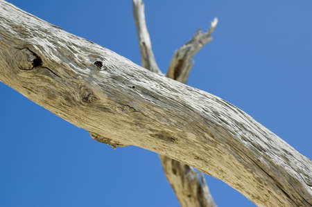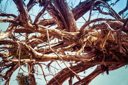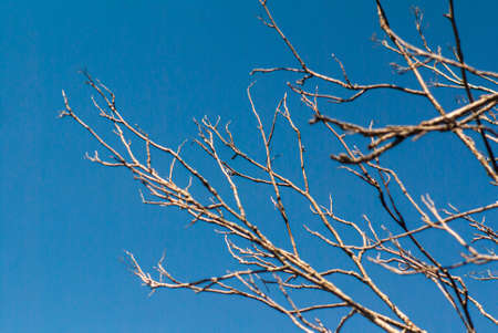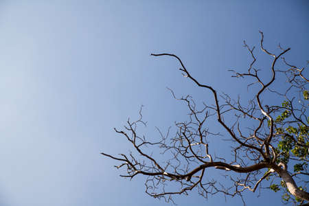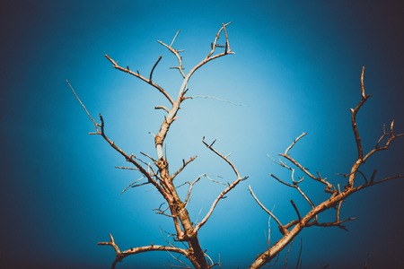 Dead tree isolated on blue sky background, Dead branches of a tree.Dry tree branch.Part of single old and dead tree on blue sky background.
