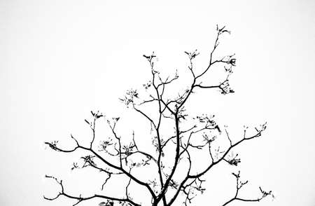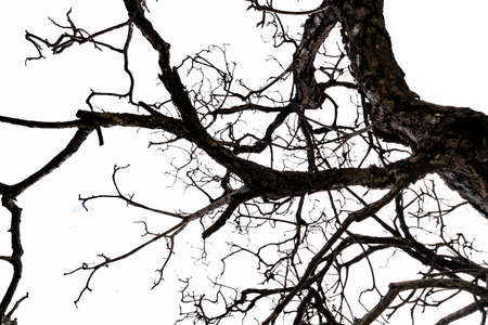 Bottom view of dead tree and disorganized branches isolated on white background. Death, hopeless, despair,sad, and lament concept. Halloween day background. Dead tree branch for graphic design.