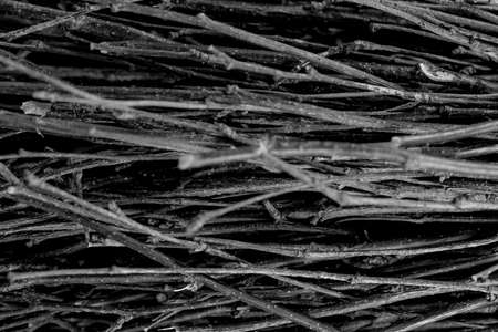 Pile of interwoven dry branches and twigs in a forest. Concept of nature, wood texture, outdoor scenery, organic material.