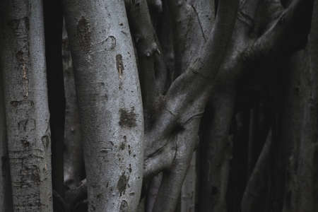 This artistic image features twisted branches against a weathered wall, creating a dark and moody atmosphere ideal for various creative projects.