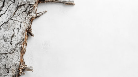 Modern white backdrop with light brown grainy bark details layered subtly at the edges, clean and warm design
