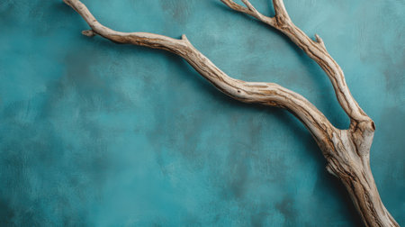 This image features a dry branch beautifully contrasted against a vibrant blue wall, showcasing a textured surface for an artistic and minimalistic appeal.