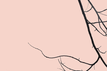 Twisting tree branches in a minimalist composition against a textured concrete backdrop