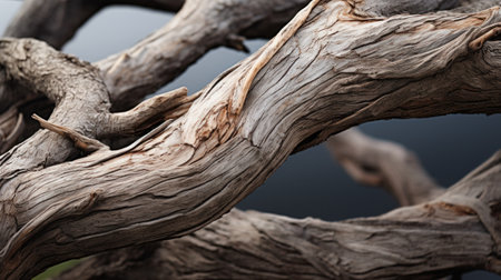 AI Generated. Close Up of Cracked and Weathered Tree Branch with Natural Texture