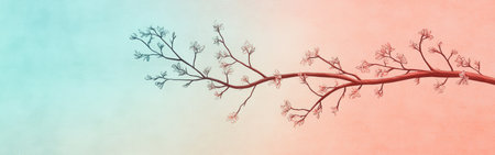 Lush cherry blossoms sit on a pastel light mint background, creating a peaceful scene with copy space, ideal for branding or creative mock-up use, banner