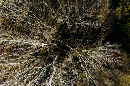 An overhead shot of the naked trees during daytime