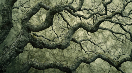 This close-up depiction showcases a tree's unique branching pattern, highlighting the beautiful balance of nature with soft green tones and intricate organic details.