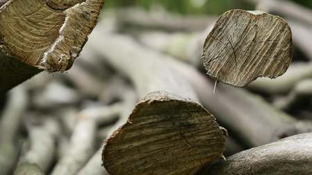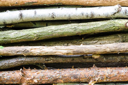 Exactly trimmed cuttings of branches without bark. Composition of wood.