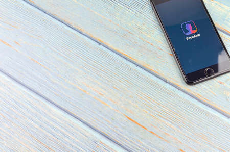 Puchong, Malaysia - July 19, 2019; The iPhone 7 plus with FaceApp on the screen, faceapp is a popular photo editing application on the App Store.