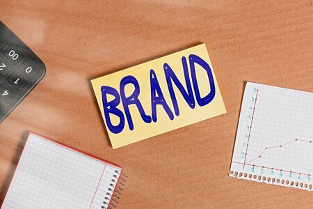 Word writing text Brand. Business photo showcasing name identifies one seller good as distinct from those of other seller Cardboard paperboard notebook office study supplies chart reminder paper