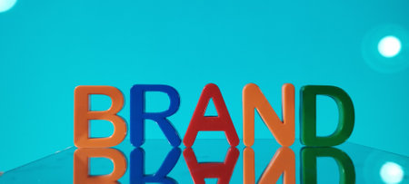 Wood cubes with the word “Brandâ€, close up picture with copy space. Identity, marketing, business. Text space.