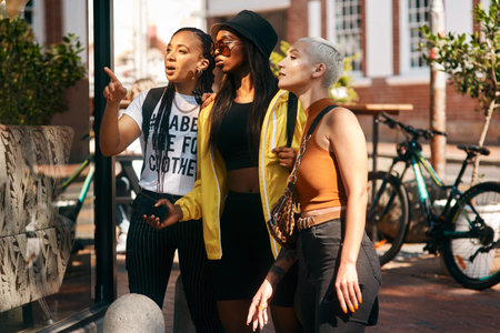 Three fashion-forward young women confidently posing in front of a vibrant pink graffiti wall, exuding attitude and style.
