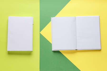 Blank books on color background